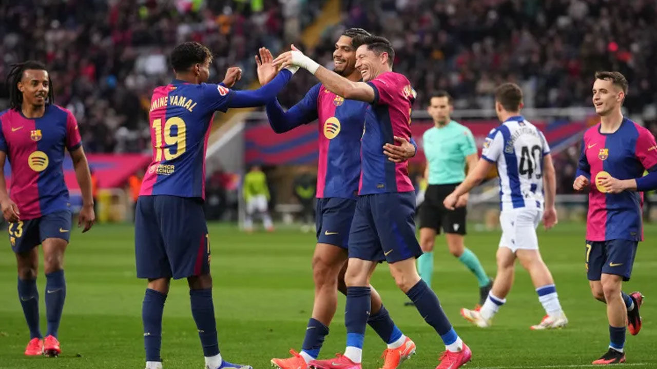 ম্যাচের ৩২ মিনিটে স্প্যানিশ ফরোয়ার্ড মিকেল ওয়ারসজাবালের দৃষ্টিনন্দন ভলিতে এগিয়ে যায় রিয়াল সোসিয়েদাদ। লামিন ইয়ামাল ও ফেরান তোরেসদের একাধিক চেষ্টা ব্যর্থ হলে প্রথমার্ধের লিড নিয়েই বিরতিতে যায় স্বাগতিকরা।