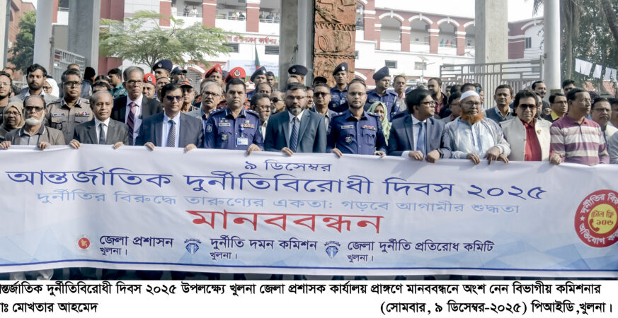 তথ্যবিবরণী আন্তর্জাতিক দুর্নীতিবিরোধী দিবস উপলক্ষে খুলনায় আলোচনা সভা ও শোভাযাত্রা অনুষ্ঠিত। এ উপলক্ষে মঙ্গলবার সকালে জেলা প্রশাসকের সম্মেলন কক্ষে আলোচনা সভায় প্রধান অতিথি ছিলেন বিভাগীয় কমিশনার মোঃ মোখতার আহমেদ। ‘দুর্নীতির বিরুদ্ধে তারুণ্যের একতা: গড়বে আগামীর শুদ্ধতা’ এবারের প্রতিপাদ্য বিষয়। সভায় প্রধান অতিথি বিভাগীয় কমিশনার বলেন, দুর্নীতি একটি সামাজিক ব্যাধি। নিজেকে দিয়ে দুর্নীতি দমন শুরু করতে […]