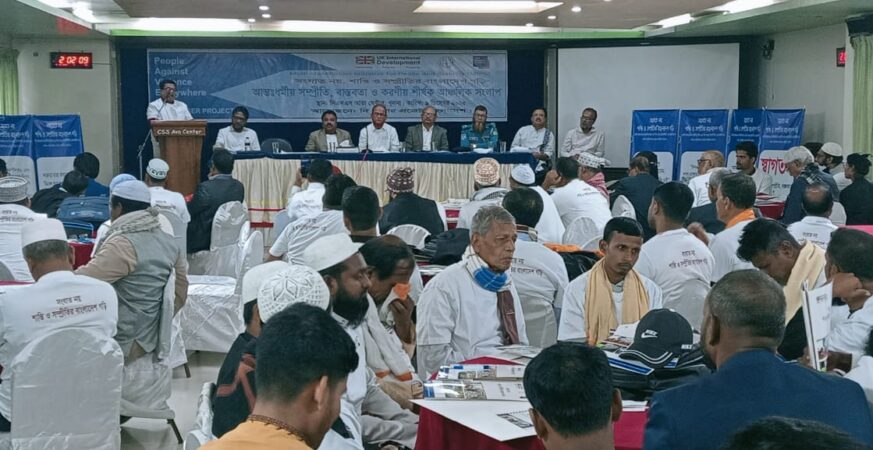নিজস্ব প্রতিবেদক; ধর্মীয় সম্প্রীতি জোরদার, বর্ণবাদ প্রতিরোধ এবং কুসংস্কার মোকাবেলায় আঞ্চলিক সংলাপ অনুষ্ঠিত হয়েছে। মঙ্গলবার সিএসএস আভা সেন্টারের দি হাঙ্গার প্রজেক্ট বাংলাদেশ ও এমবিএসপিএস প্রকল্পের উদ্যোগে দিনব্যাপী এ সংলাপ অনুষ্ঠিত হয়। সকাল দশটায় রেজিস্ট্রেশন ও উপকরণ বিতরণের মাধ্যমে অনুষ্ঠান শুরু হয়। মুক্ত আলোচনা পর্বে অংশ নেন বিভিন্ন সংগঠনের প্রতিনিধি, ধর্মীয় নেতা, শিক্ষক ও নাগরিক সমাজের […]