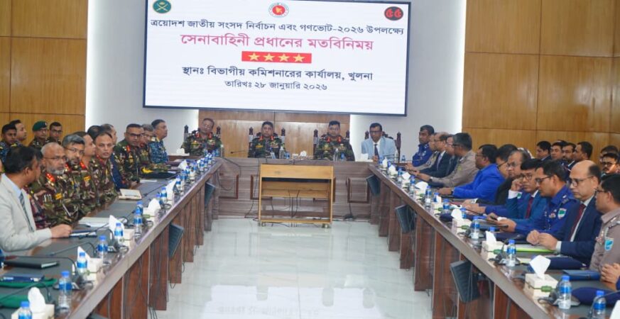 আসন্ন ত্রয়োদশ জাতীয় সংসদ নির্বাচন ও গণভোট-২০২৬ উপলক্ষ্যে সার্বিক আইনশৃঙ্খলা পরিস্থিতি পর্যালোচনা ও মোতায়েনরত সেনাসদস্যদের কার্যক্রম পর্যবেক্ষণে খুলনা পরিদর্শন করেছেন সেনাবাহিনী প্রধান জেনারেল ওয়াকার-উজ-জামান। পরিদর্শনকালে তিনি ‘ইন এইড টু দ্য সিভিল পাওয়ার’-এর আওতায় দায়িত্বপ্রাপ্ত সেনাসদস্যদের কার্যক্রম সরেজমিনে পরিদর্শন করেন এবং প্রয়োজনীয় দিকনির্দেশনা দেন। এছাড়া খুলনা বিভাগীয় কমিশনারের কার্যালয়ে আয়োজিত মতবিনিময় সভায় সামরিক ও অসামরিক প্রশাসন […]