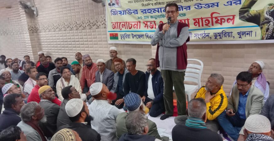 ডুমুরিয়া প্রতিনিধি ডুমুরিয়ায় উপজেলা বিএনপি ও অঙ্গ সংগঠনের আয়োজনে মহান স্বাধীনতার ঘোষক, বহুদলীয় গণতন্ত্রের প্রবক্তা, আধুনিক বাংলাদেশের রূপকার, বিএনপির প্রতিষ্ঠাতা, সাবেক সফল রাষ্ট্রপতি শহীদ জিয়াউর রহমানের ৯০তম জন্মবার্ষিকী পালিত হয়েছে। এ উপলক্ষে সোমবার বেলা ১২টায় দলীয় কার্যালয়ে এক আলোচনা সভা ও দোয়া মাহফিল অনুষ্ঠিত হয়। উপজেলা বিএনপির সাবেক সভাপতি মোল্যা মোশাররফ হোসেন মফিজের সভাপতিত্বে আয়োজিত […]