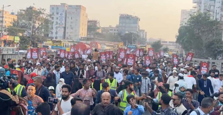 ঢাকা অফিস জুলাই ঐক্যের আয়োজিত ‘মার্চ টু ইন্ডিয়ান হাইকমিশন’ কর্মসূচিতে পুলিশের বাধা দেওয়ার ঘটনা ঘটেছে। শেখ হাসিনাসহ জুলাই হত্যাকাণ্ডে অভিযুক্তদের দেশে ফিরিয়ে আনা ও ষড়যন্ত্রের প্রতিবাদে এ কর্মসূচির আয়োজন করা হয়। বুধবার (১৭ ডিসেম্বর) বিকেল সাড়ে ৩টায় রাজধানীর রামপুরা ব্রিজ থেকে লং মার্চ শুরু হয়। বিকেল ৪টার দিকে বাড্ডার হোসেন মার্কেটের সামনে পুলিশ ব্যারিকেড দিয়ে […]
