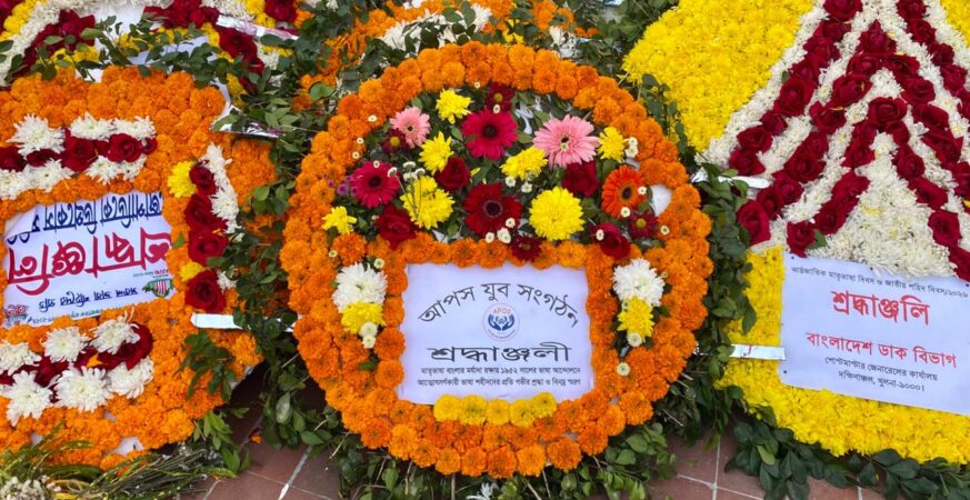 খুলনার আপস যুব সংগঠন শহীদদের শ্রদ্ধায় পুষ্পার্ঘ্য অর্পণ করে