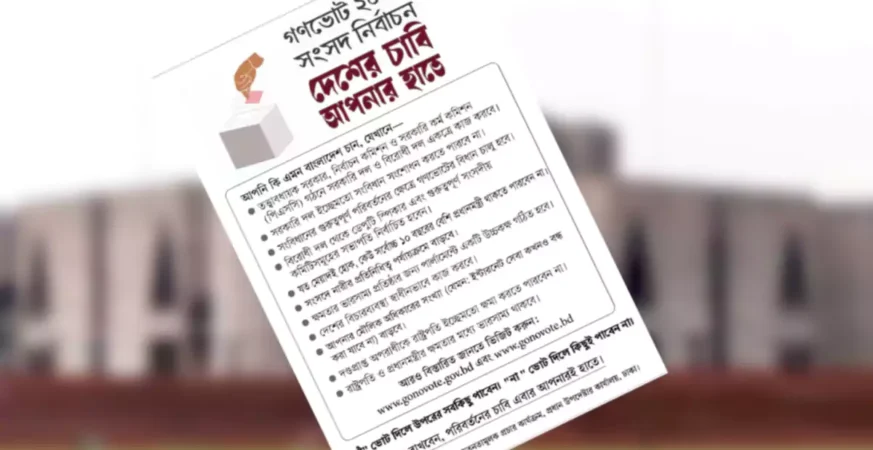 ‘দেশের চাবি আপনার হাতে’ স্লোগান সামনে রেখে গণভোট নিয়ে ব্যাপক জনসচেতনতামূলক প্রচারণা চালাচ্ছে প্রধান উপদেষ্টার কার্যালয়। শুক্রবার (২ জানুয়ারি) প্রধান উপদেষ্টার ভেরিফায়েড ফেসবুক পেজে গণভোটে ‘হ্যাঁ’ ও ‘না’ ভোটের গুরুত্ব তুলে ধরে একটি লিফলেট প্রকাশ করা হয়েছে, যার শিরোনাম ‘গণভোট ২০২৬ সংসদ নির্বাচন দেশের চাবি আপনার হাতে।’ গণভোটের মাধ্যমে দেশকে কী কী পরিবর্তন আনা যাবে, […]