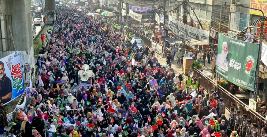 জামায়াত আমিরের পক্ষে ভোট চাইতে মিরপুরে নারী কর্মীদের মিছিল